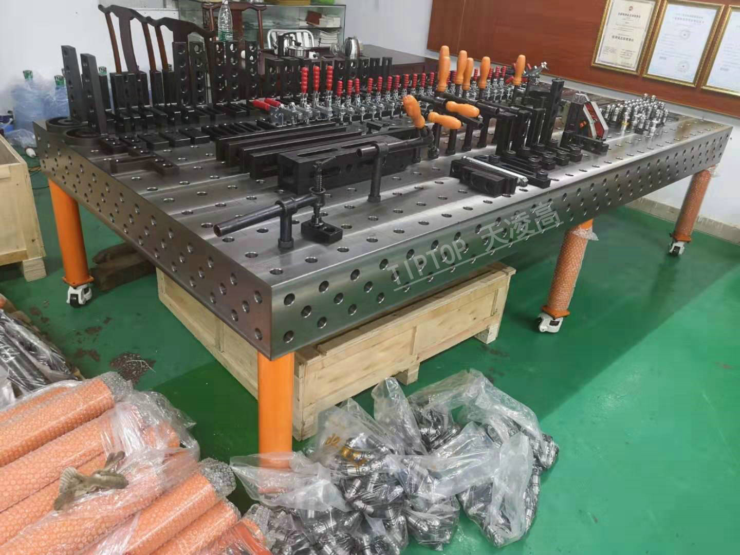 簡介:三維柔性工裝平臺:采用鑄件/鋼件制作,堅固耐用28系列孔與孔間距100mm,16系列孔與孔間距50mm,底部加強筋保證穩定不變形,地面不平位置可調腳墊微調保證,不需要卷尺能通過刻線快速定位夾具,五個面均可以模塊化延伸、拓展使用不同產品、不同規格均可以重復使用,平板表面與孔防銹潤滑油減小磨損,可以根據實際使用情況合理選用平臺支撐方式。